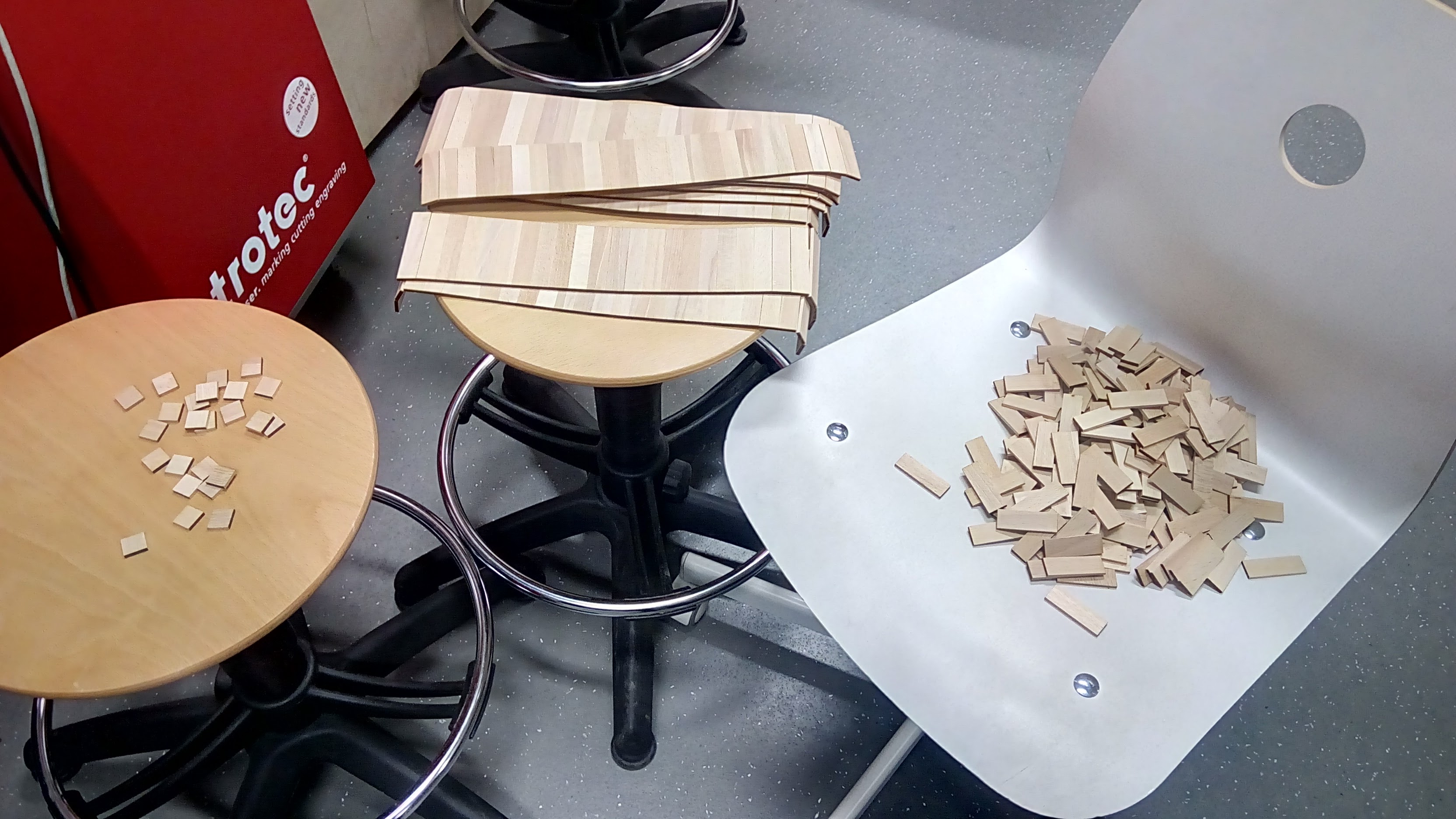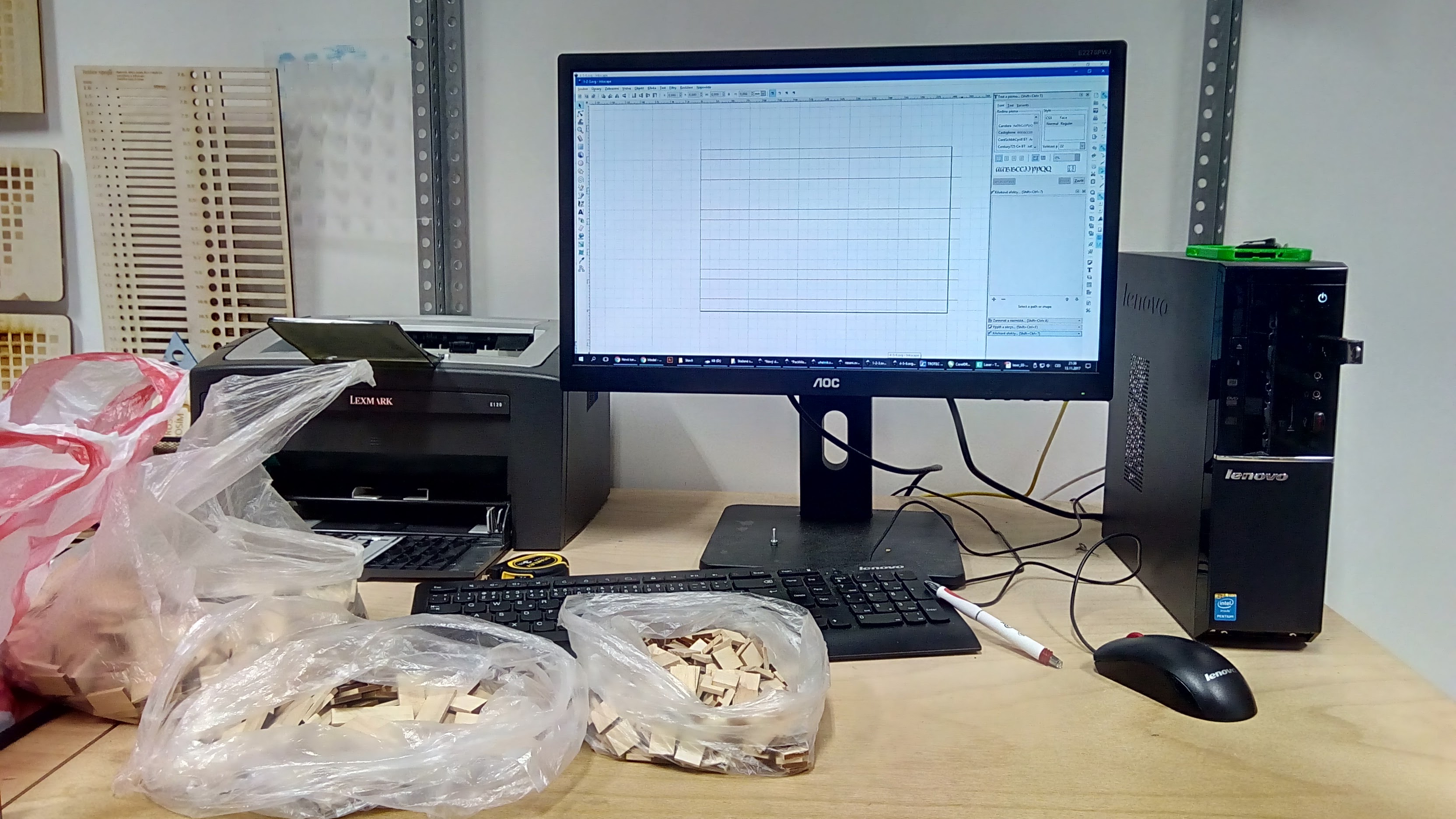 2017-11-13 VIDA Bastlfest příprava - řežeme dřevěná dřívka na laseru GP
